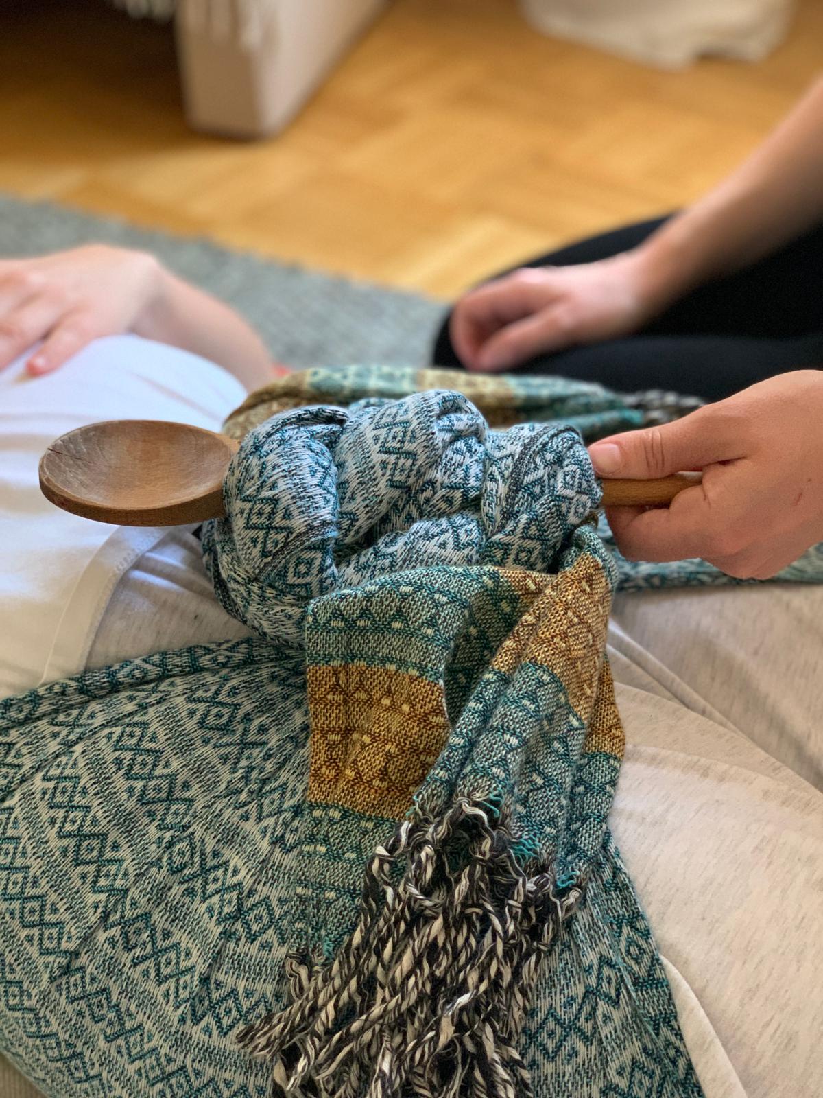 In der traditionellen mexikanischen Hebammenkunst wird das Rebozo verwendet, um den Körper sanft zu wiegen, zu halten oder zu lockern. Die rhythmischen Bewegungen mit dem Tuch können tiefe Entspannung ermöglichen und ein Gefühl von Geborgenheit vermitteln.
